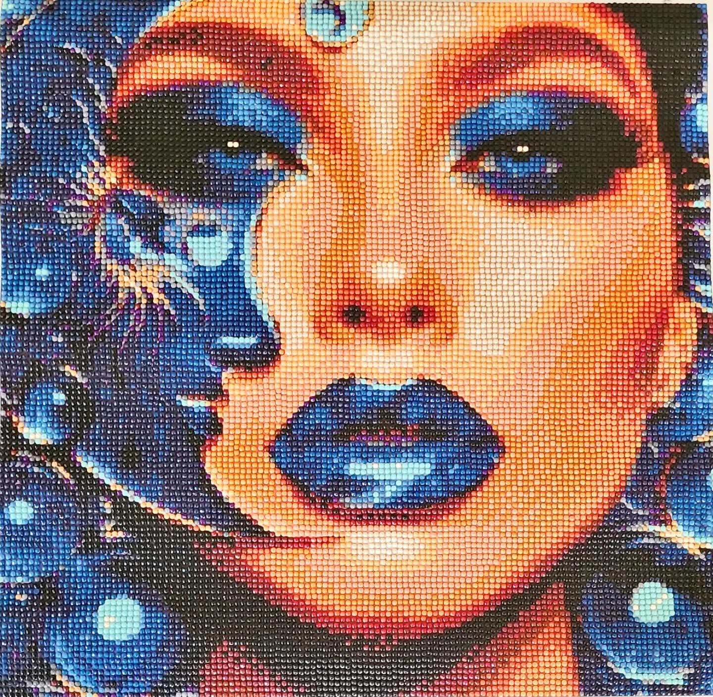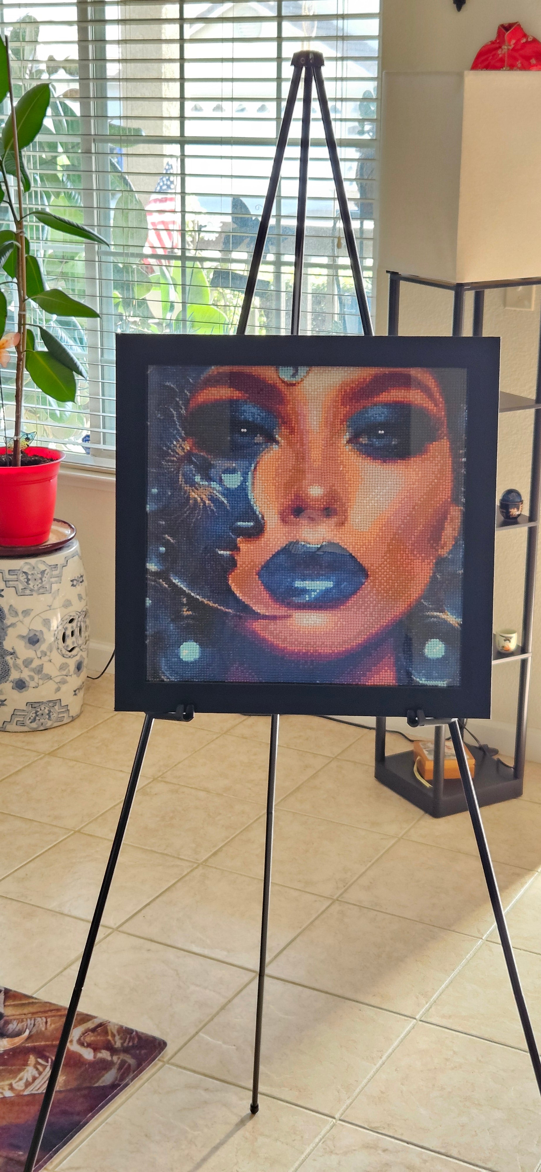Each stone has been individually placed and sealed to the canvas. Canvas comes framed as shown and with hardware to hang.